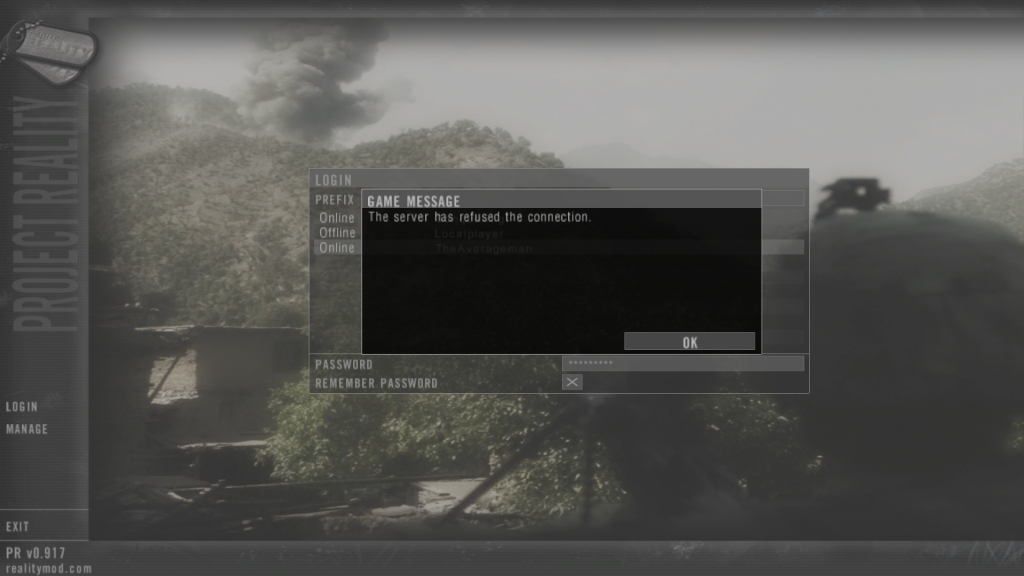 Problem outline: I start PR up, and login (as usual), but my login gets refused. I am sure I have the correct password, and it gives me this strange error message that I have not seen before. I have not modded PR, or done anything to the local files.